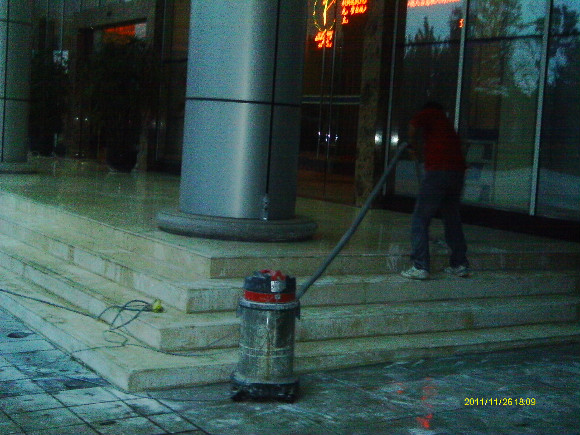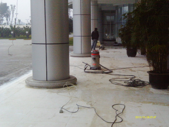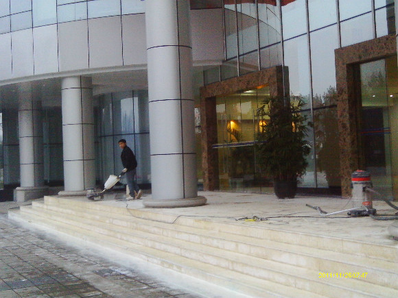 到了70年代末,一種可塑性水溶性結(jié)晶聚合物的誕生,亦即是現(xiàn)今常說的水蠟,進(jìn)化了石材護(hù)理的歷史,可以利用這種物質(zhì)對(duì)不同材質(zhì)的大理石進(jìn)行護(hù)理。分底蠟(封蠟),面蠟(拋光蠟)及保養(yǎng)蠟(日常修補(bǔ)蠟)是對(duì)大理石的塑層進(jìn)行保護(hù)并利用高速拋光來增亮,對(duì)石材的保護(hù)起到一定的作用。但是這種水蠟不足之處是蠟層的硬度有限,稍欠保養(yǎng),腳步帶進(jìn)的塵土將很容易把蠟層及石材磨花。同時(shí),遇上雨水季節(jié),因室外雨水塵埃會(huì)有一定的雜質(zhì),通過人的腳步帶進(jìn)后,對(duì)蠟層的分子組成將造成一定的影響。直觀看到是蠟層變黃及缺光澤,也就是以后常見到的許多客戶為什么須經(jīng)常將腐蝕的蠟層用起蠟水脫去,再重新分工序打上底蠟和面蠟,每次的工作量及耗用的物料較大,這種工藝現(xiàn)市場上很普通,我們稱為石材打蠟第二代。