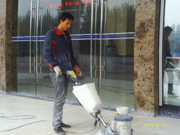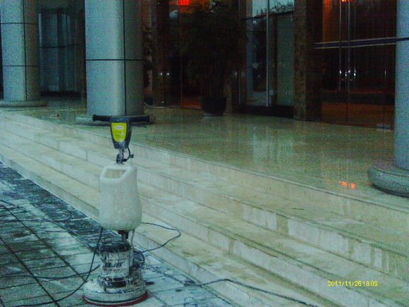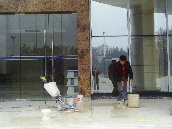 再到80年代末,緣自歐洲程序的一種工藝,“晶面處理系統(tǒng)”于90年代推進(jìn)中國市場。這個(gè)系統(tǒng)就是針對(duì)水蠟工藝上硬度、光澤、清澈度不夠及工藝復(fù)雜等不足改良而成的,其工藝原理就是在石材投入使用及未受磨損前,以幾種水晶加強(qiáng)劑配合機(jī)械,利用石塊籍壓于熱力產(chǎn)生之化學(xué)作用,先將石材表層下的氣孔封閉,使其污垢不能滲入,同時(shí)表層上加上幾層熱處理保護(hù)層,起到增加石材表面的硬度和光度,更有防滑之功效,石質(zhì)原有天然色澤得到帶出及全面性保護(hù),保持度教一般水蠟高幾倍。長期使用,耗用的人力物料成本較水蠟低,無須每天補(bǔ)蠟及定期起蠟等復(fù)雜工序,此工藝為目前大理石保養(yǎng)及翻新后晶面的理想工藝,我們稱為石材打蠟第三代。